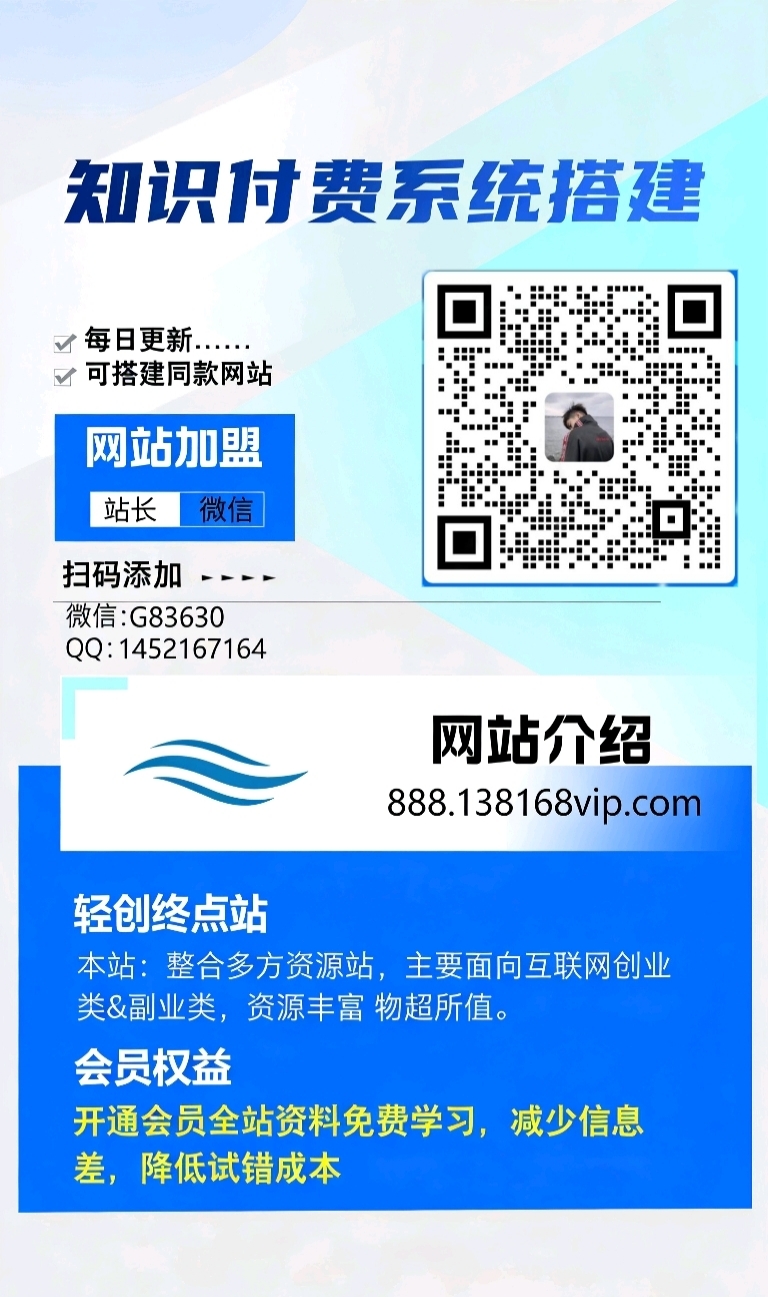 加盟轻创终点站,加盟搭建同款知识付费资源网站,实现长期稳定被动收入~